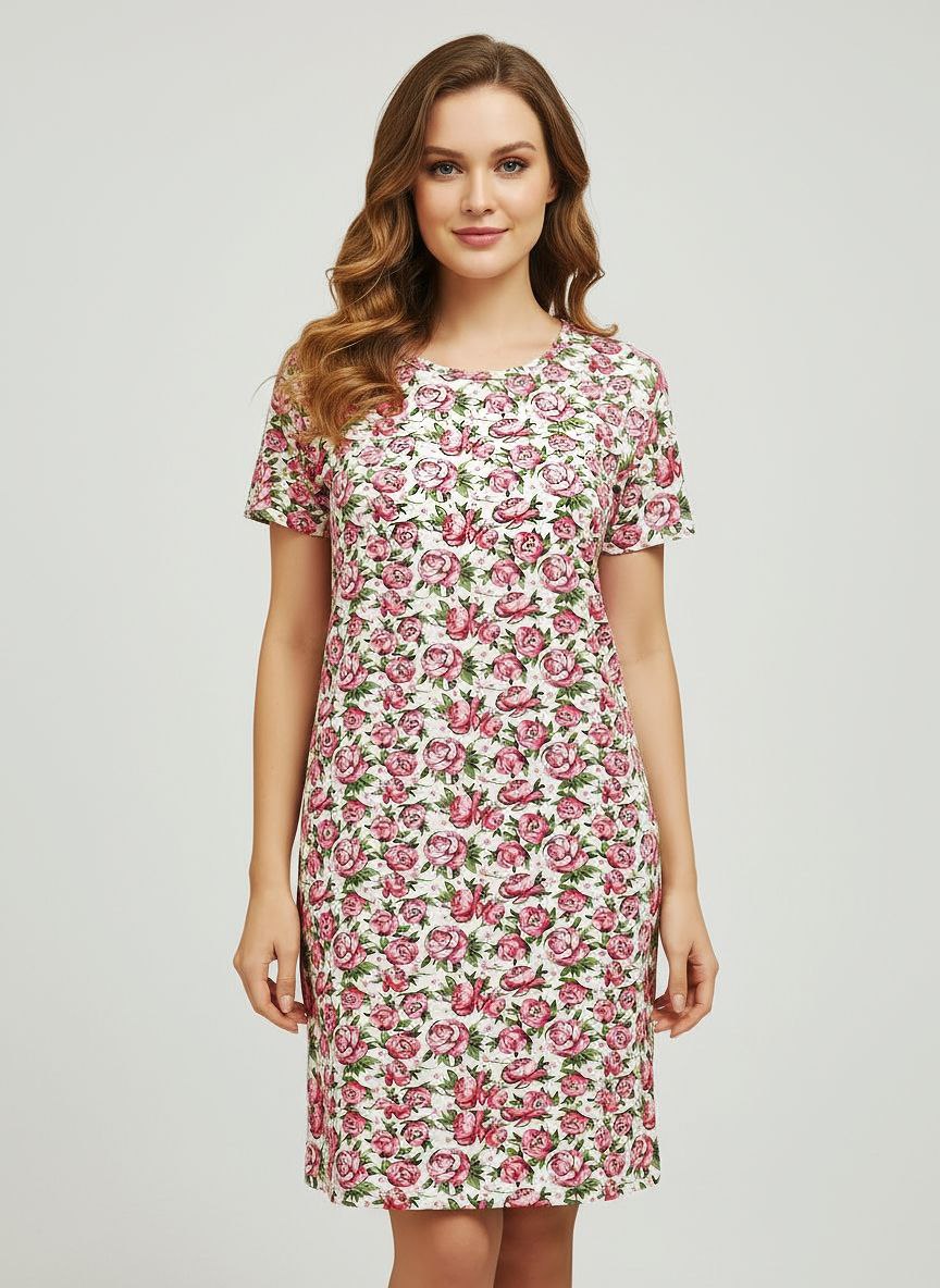 Сорочная ночная женская Комфортная ночная сорочка свободного прямого покроя с цельнокроенными рукавами, средней длины, из натурального хлопкового трикотажа, идеально подойдет для ночного сна и домашнего отдыха.